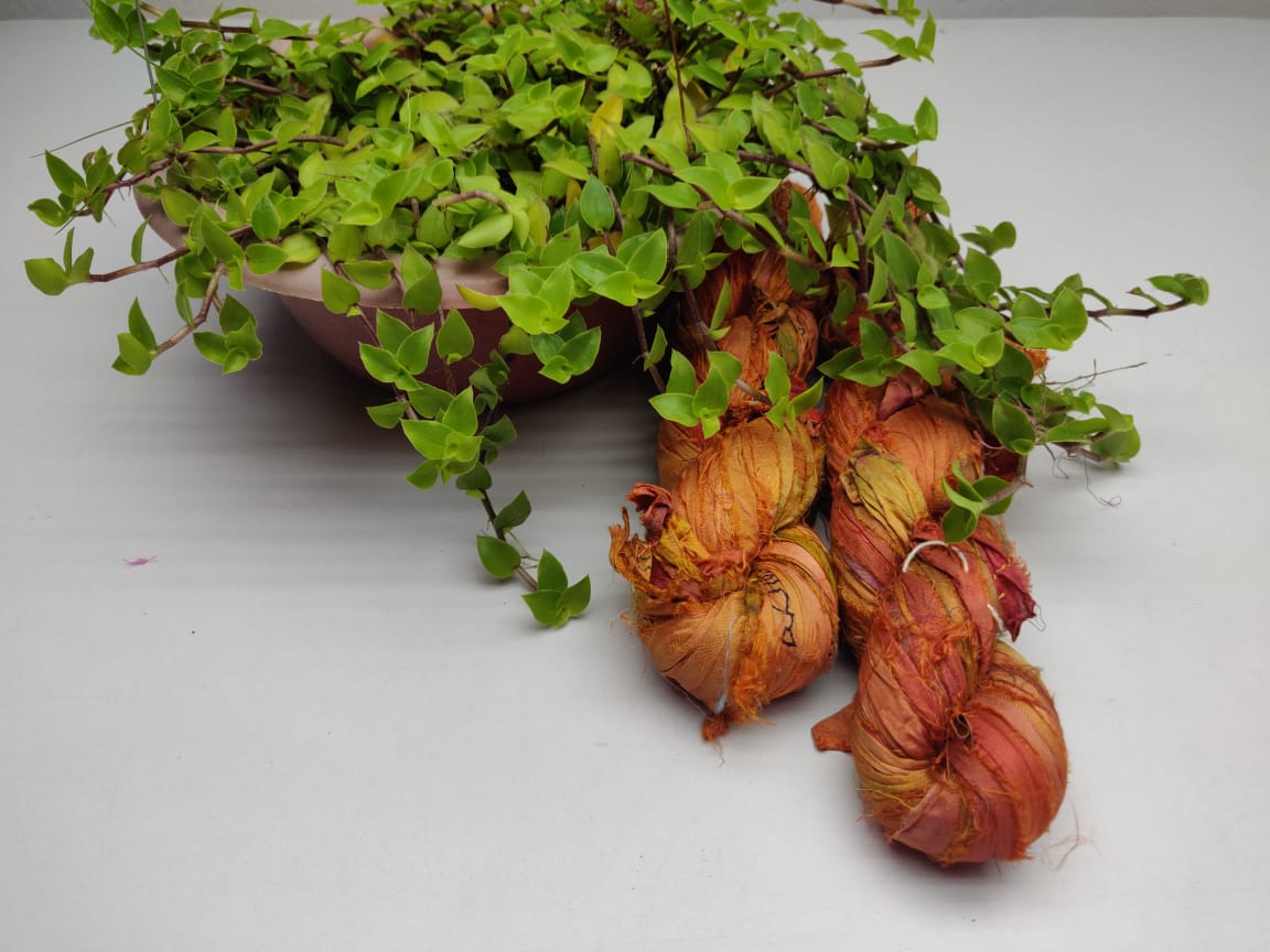This ribbon is made of completely recycled Silk ribbon is material from recycled clothing. We work with women’s Cooperative in the countryside to produce this unique ribbons and other hand knitted silk yarn products. Women make this Sari Silk ribbon and various knitwear in their homes while not neglecting their other household chores. This work provides additional income to support and improve their family earnings.